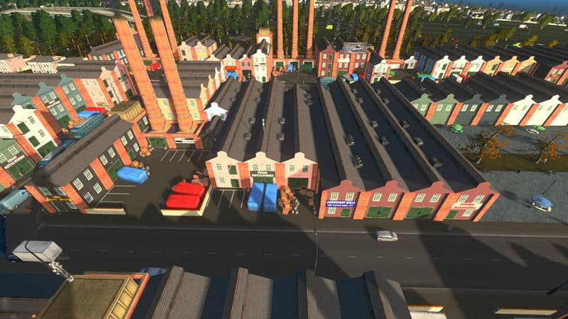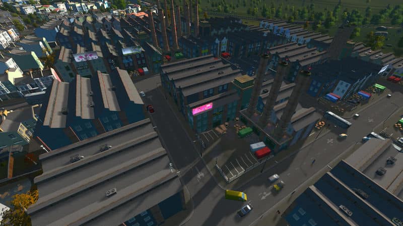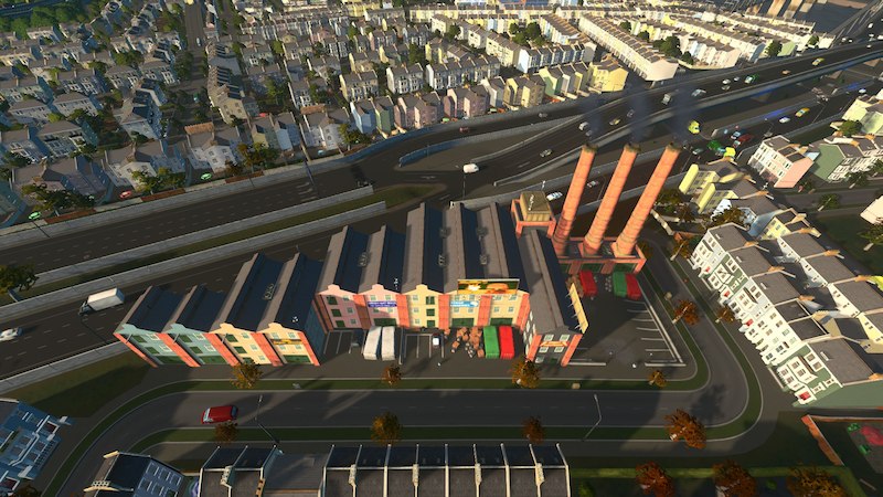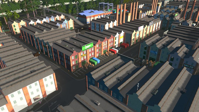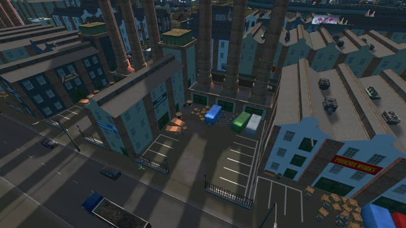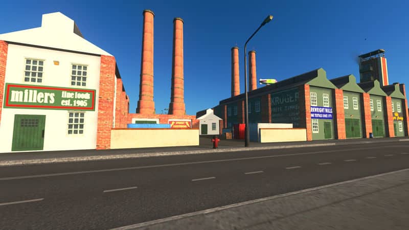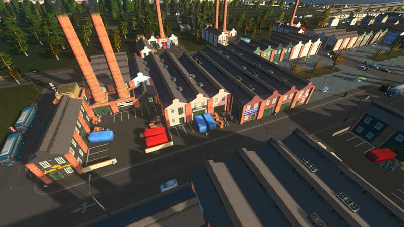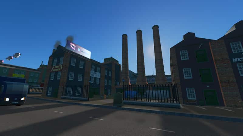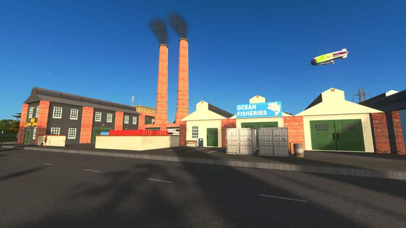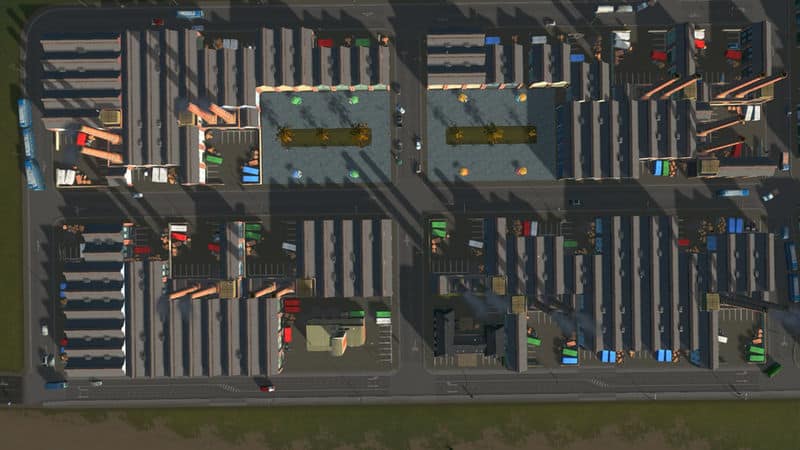 All buildings are constructed right up to the limits of their lot, so when multiple buildings from this set are built next to or behind each other it looks like one large factory, getting past the 4×4 plot limit.
