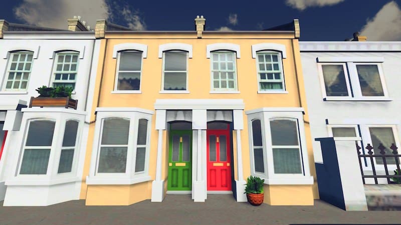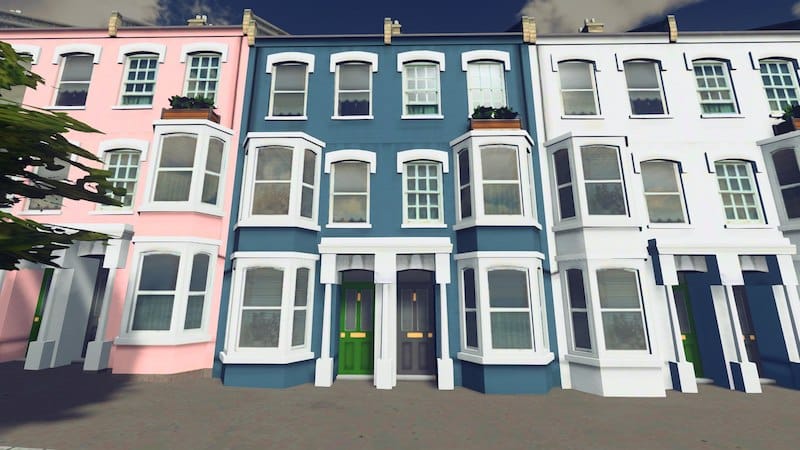 Level one is a pair of basic terraced cottages, level two gains bay windows on the ground floor, level three gets bay windows on the upper floor, level four gets a third floor, level five gets bay windows on the third floor. They have been designed so that if they spawn on a single tile back to back or up against another asset then they have a small alleyway behind for access.