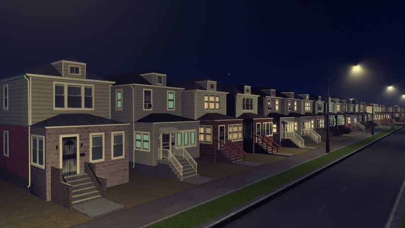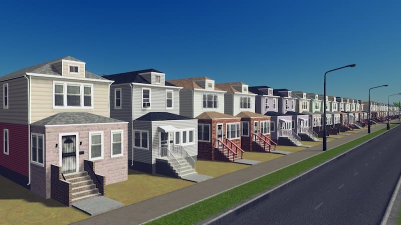 These are American Colonial style homes that could be found in Bronx, New York. Most were built in the