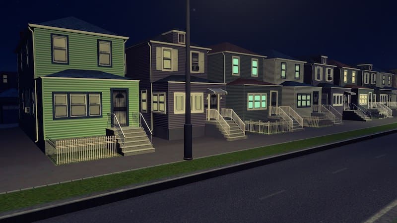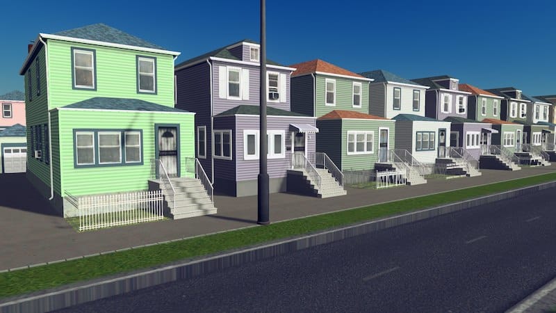 These are American Colonial style homes that could be found in Bronx, New York. Most were built in the