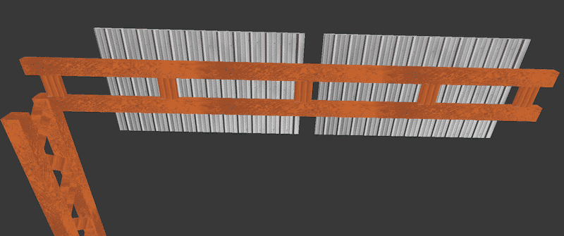 A brown rusty steel beam assembly for a soon to be released modular highway sign set that should work with the mark a route mod. This beam uses a texture known as weathering steel, to give the metal a rustic brown look.