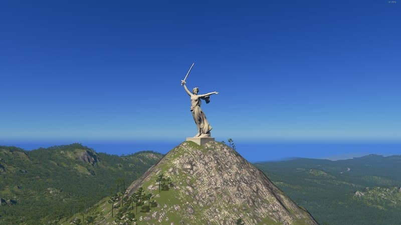 The statue I used for the screenshot is an edited version of The Motherland Calls by alexzzzz; edited it to remove the pedestrian paths.