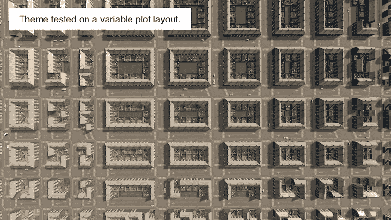 To use this theme you must subscribe to the ‘Building Themes Per District’ mod