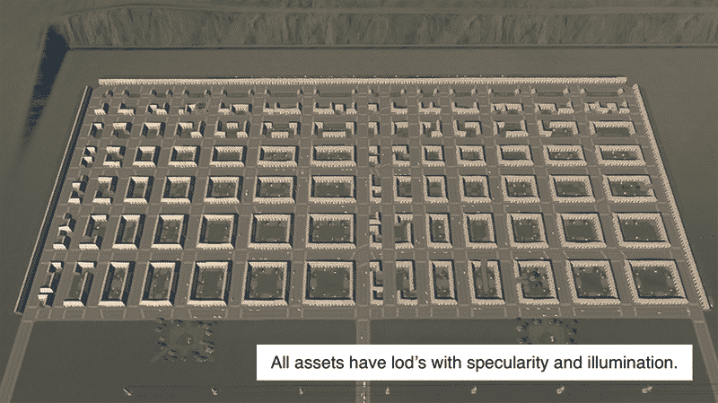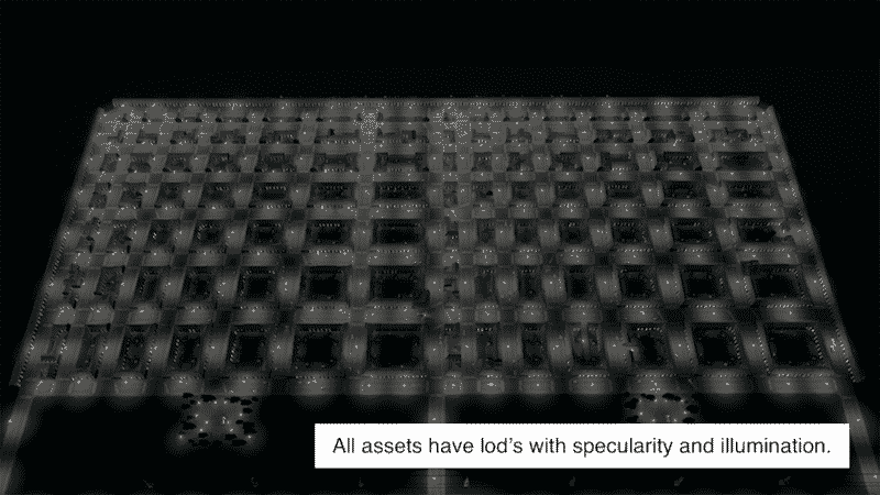 Each asset has an lod which includes specularity and illumination.