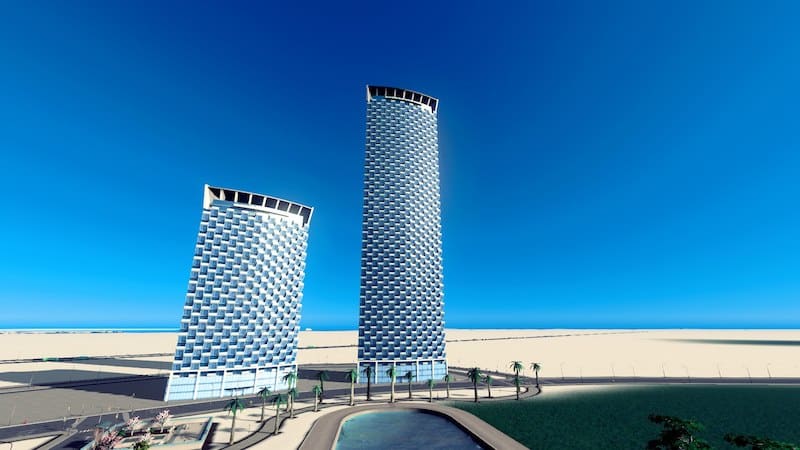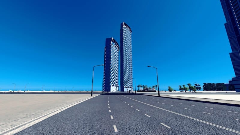 A 27 storey skyscraper located in Downtown Dubai, UAE. These towers are under construction and pretty soon topped out.