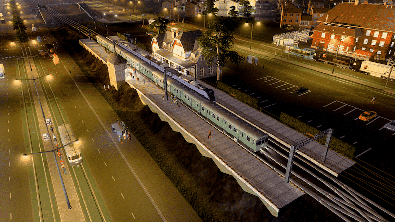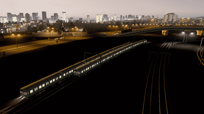 Only the engine (first car) will have headlights and red tail lights. You can use the IPT – Improved Public Transport mod or the Advanced Vehicle Options (AVO) mod to replace the last car with an engine in order to get headlights and tail lights on the last car as well.