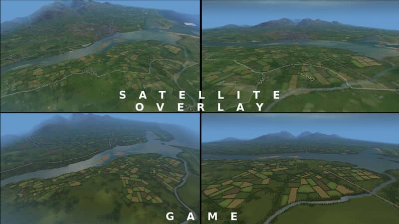 GET YOUR MAP AND SATELLITE OVERLAY HERE! Here are the accurate, partially transparent 1:1 overlay images used to make this map and its true to life fields (lol details, details).