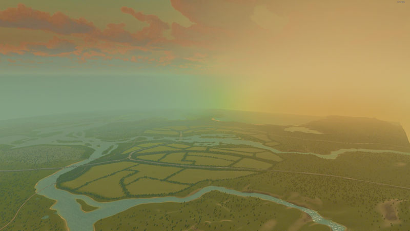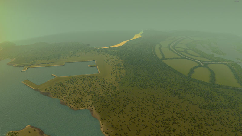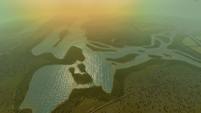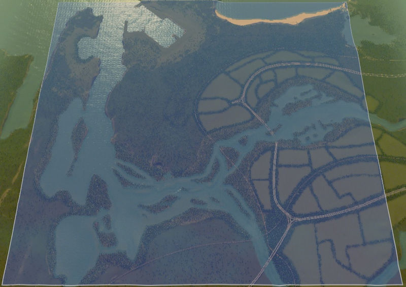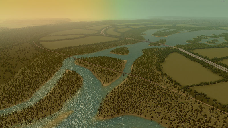 This map takes it’s inspiration from lower Lousiana with its marshes and wetlands. Louisiana has a humid subtropical climate, perhaps the most “classic” example of a humid subtropical climate of all the Southcentral states. It has long, hot, humid summers and short, mild winters. The subtropical characteristics of the state are due in large part to the influence of the Gulf of Mexico.
