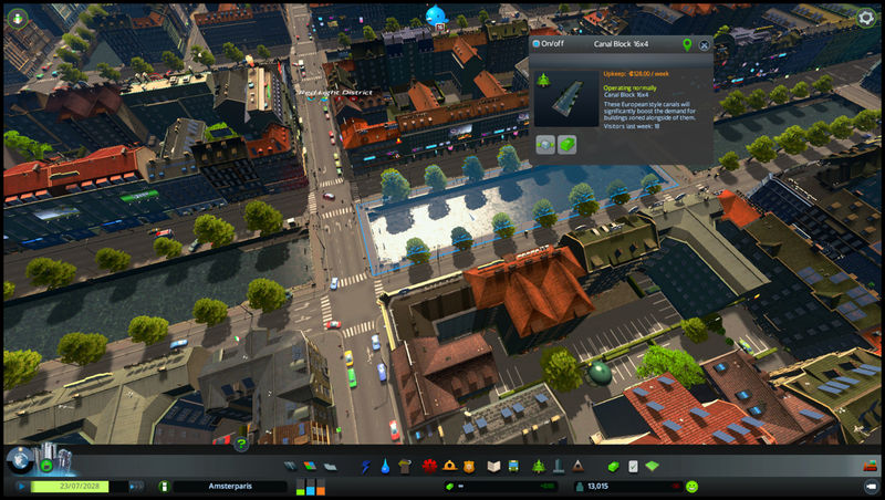 These European style canals work a lot like Lego blocks. There’s no need for terraforming or water management, and the terrain does not have to be flat. The blocks are setup to skyrocket land value within a very limited range. Assuming you have your regular services setup correctly, buildings alongside these canals will quickly level up to 3, 4 or 5.