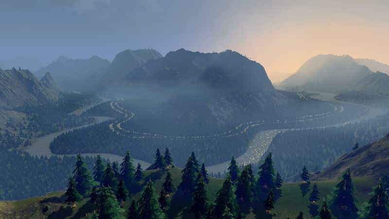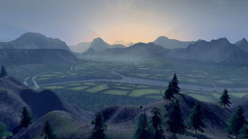 Cantil Valley was designed with the basic goal of having interesting, realistic looking terrain without sacrificing much playability. Only four of its tiles are the fertile valley itself, while the rest consist of the various mountains, valleys, and mesas surrounding it. Almost every piece of terrain is placed with the intent of setting up a scenic overlook or a level place to build.