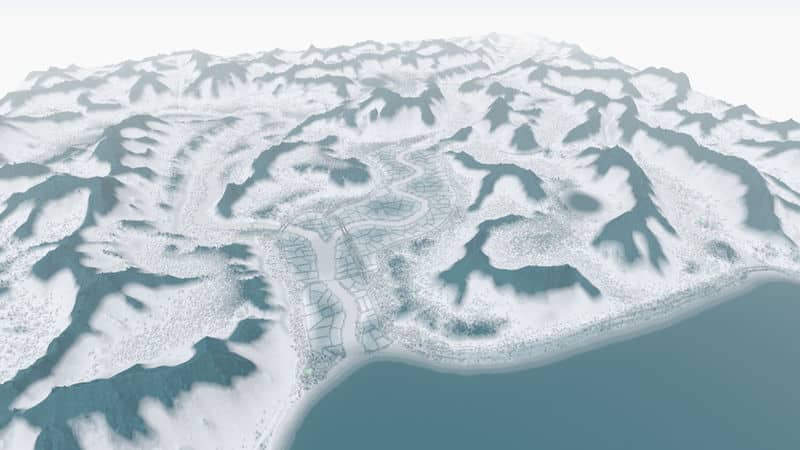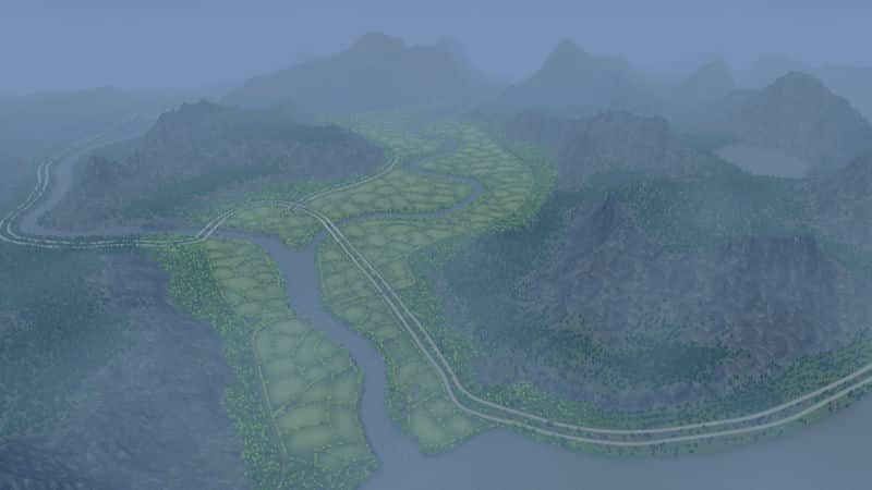 Height map painted in Photoshop, edited with Wilbur and the Skylines Map Editor.