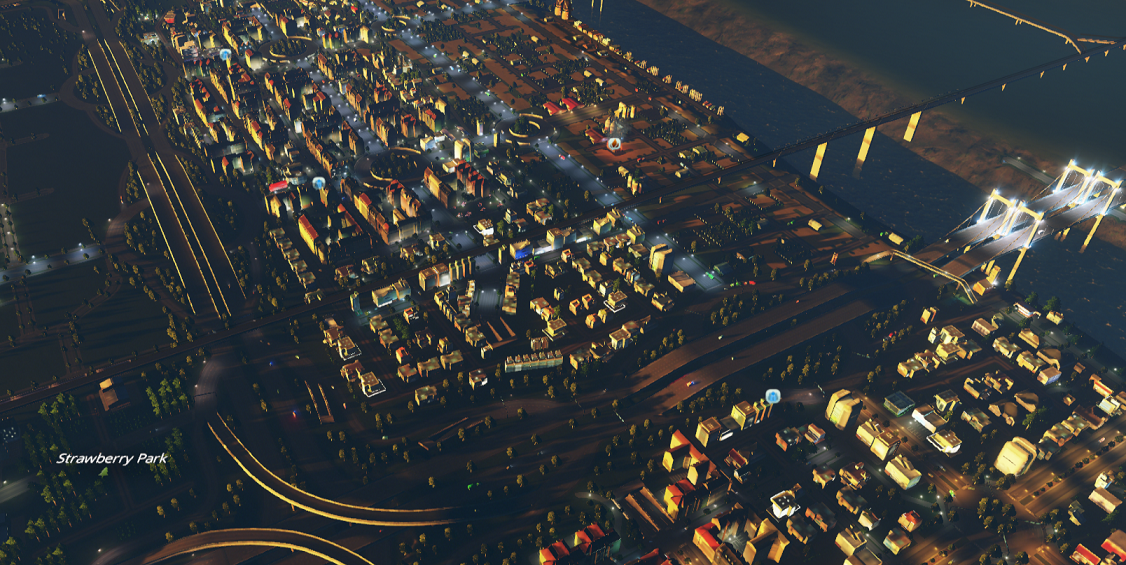 I used custom assets to create the highway system and I strongly recommend subscribing to them, because it’s possible you’ll end up with no highways at all if you don’t have them. The custom highway assets were created by other people, all credit belongs to them!
