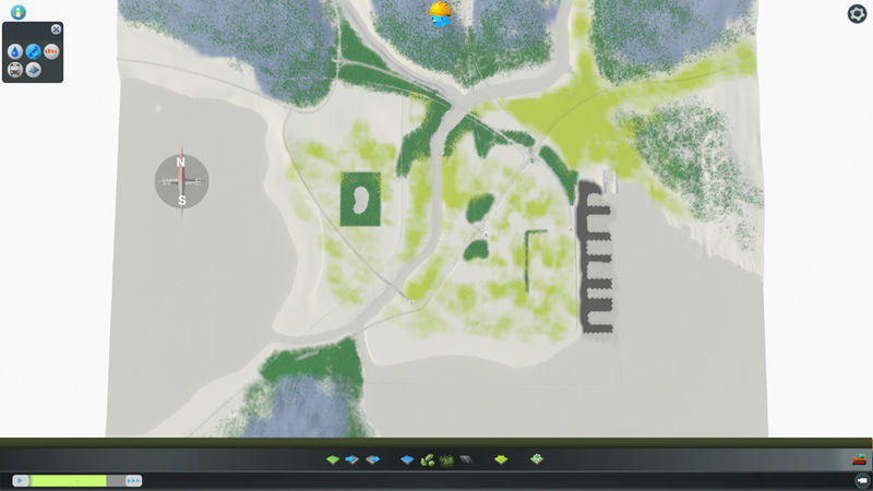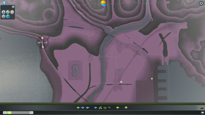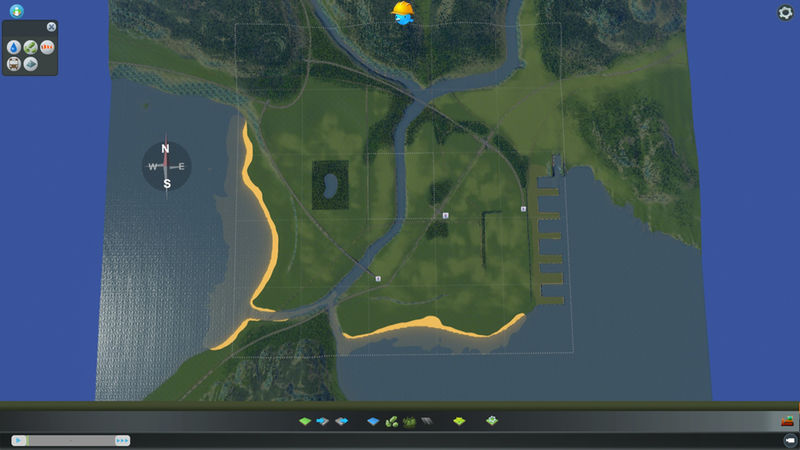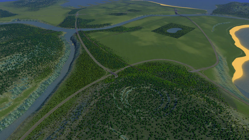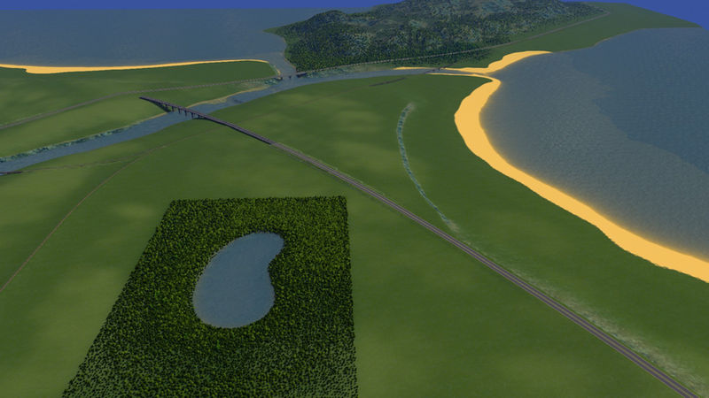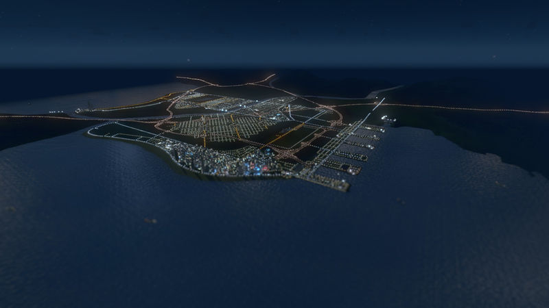 This map was built for my next big city so the terraforming got a little specific. I used fine road heights and configurable slope limits, though I had to cheat for the stack interchange and used one with vanilla slopes. You do not need the mods to play the map, but I do recommend 25 tiles. The harbour is in the east for that morning sun, and then there is the party beach in the west.