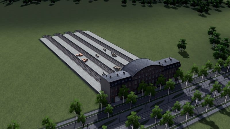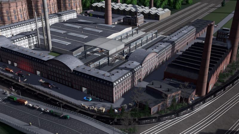 -Its a terminal station, spawning trains might clip through the building, depending on how long they are!