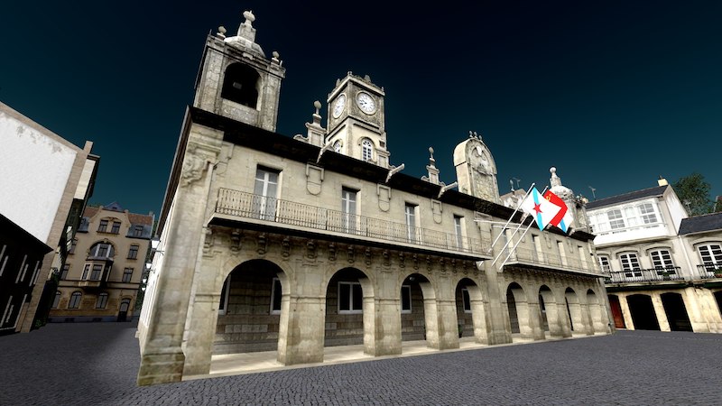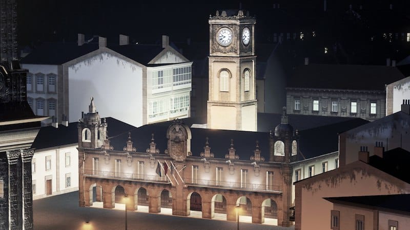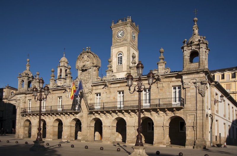City Hall of Lugo. Built in XIV century, the facade was built in Baroque style, between 1735-1744. The clock tower was added in 1873. Is placed in the Mayor Square (Praza Maior).