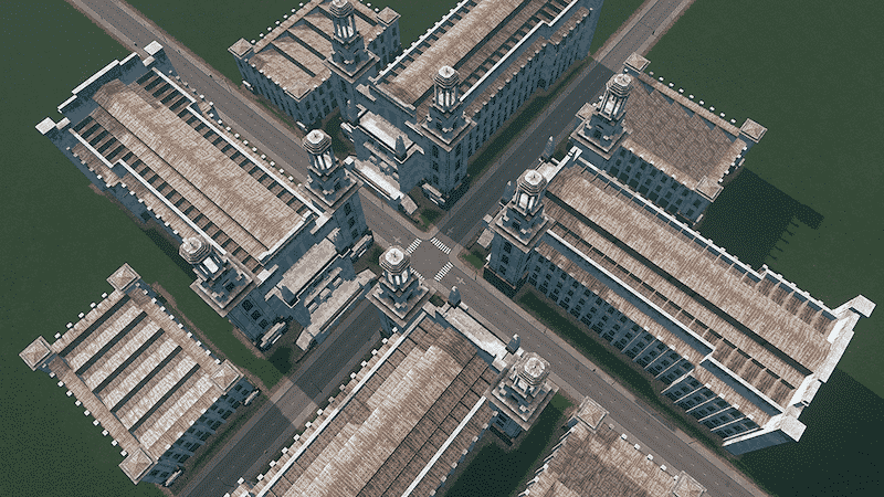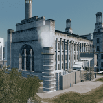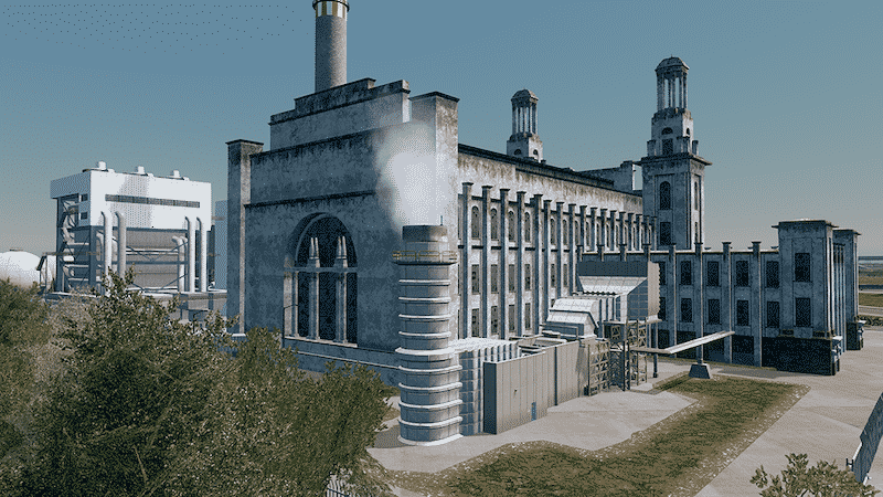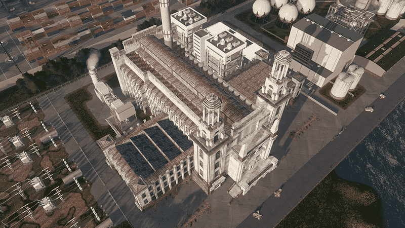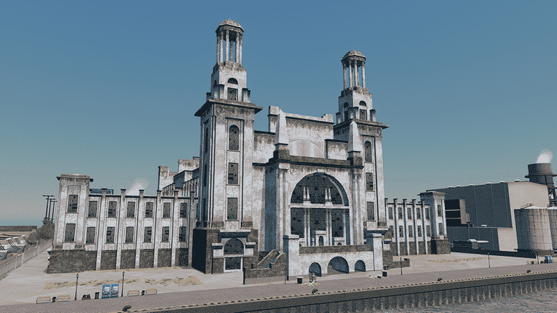Modeled on La Súper Usina “Dr. Carlos Givogri”, in Central Puerto Nuevo, Buenos Aires, Argentina – which opened in 1933 for the Argentine-Italian Electricity Company. The building is a thermo-electric power plant designed and built in a time when function followed form. This variation contains 2 Unique Buildings. Oil Power Plant version found here