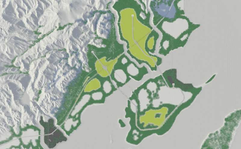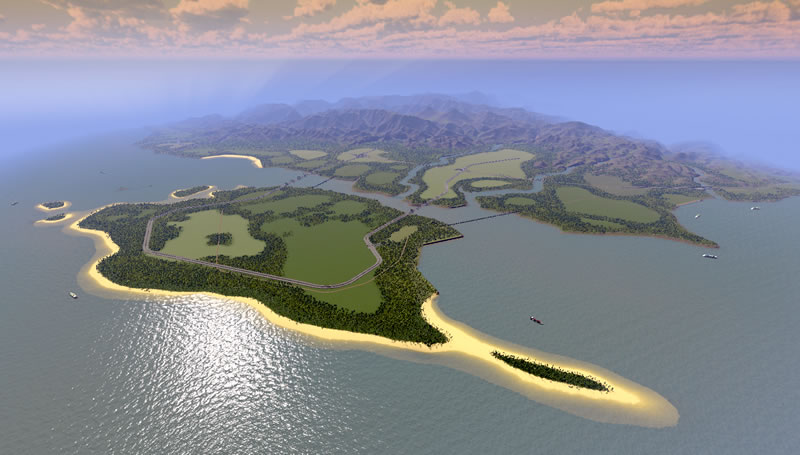 This island paradise has abundant resources, but only 2 highway connections and 3 rail connections. However, there are multiple prime locations for seaports and harbors to move goods and tourists, and of course full use of the sea and air connections.