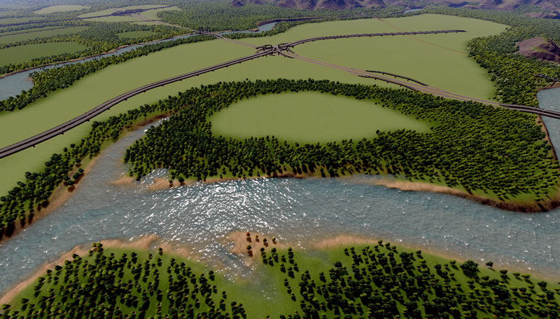The starting tile has good water flow for input and output, and a pre-built highway on/off ramp. However, as usual, I recommend using the 25 tile mod to make full use of the landscape.