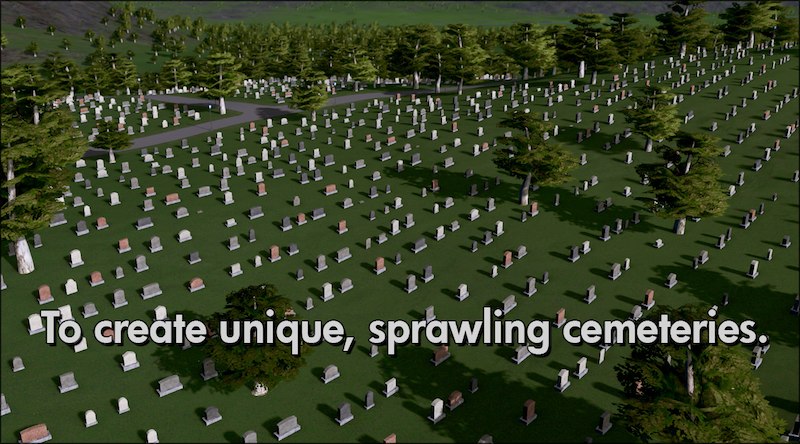 – Use More Beautification and Prop Anarchy to incorporate trees and grave props within the cemetery