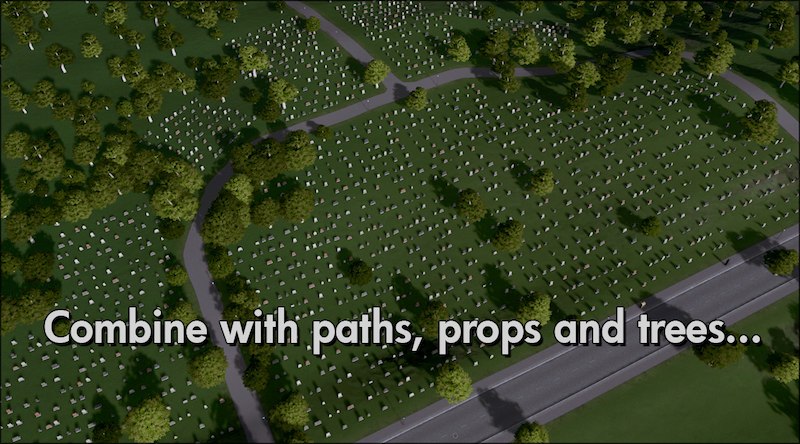 – Use More Beautification and Prop Anarchy to incorporate trees and grave props within the cemetery
