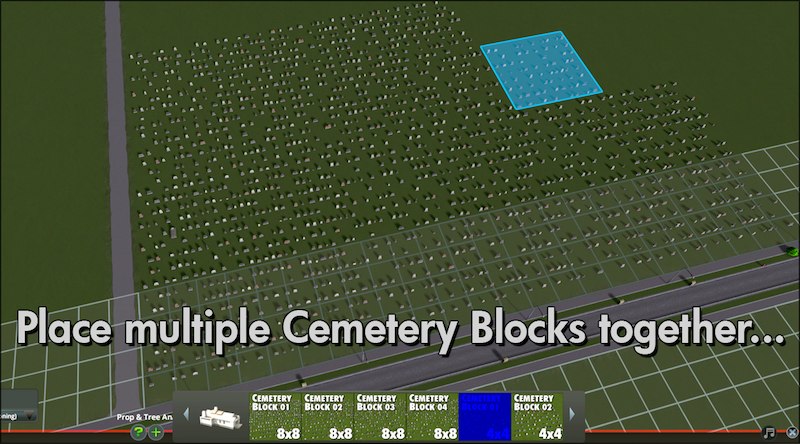With Cemetery Blocks you can create the massive, beautifully landscaped cemetery of your dreams, fill a tiny, oddly shaped space next to a church in the middle of your city or even create a small family graveyard in the woods behind a residential home.
