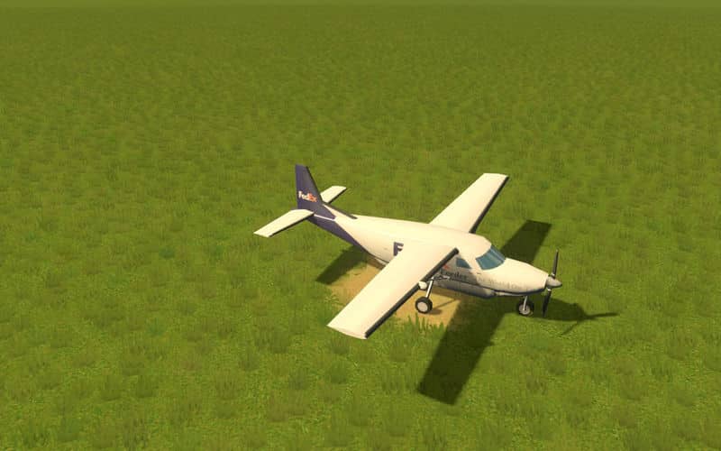 A model of Cessna Caravan with a FedEx paint scheme. These planes are used to service small airports, which are too small for large Jets to land (e.g. 757). These can be found at larger cargo hub airports as well.