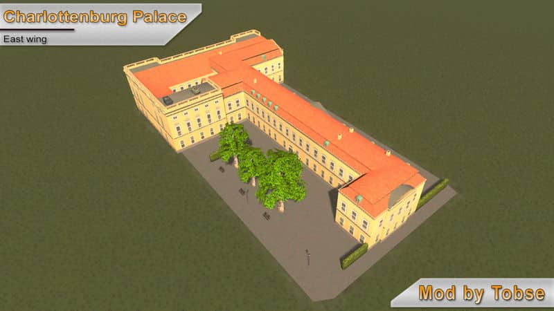 -You need the mod Not So Unique Buildings by BloodyPenguin because the west passage building you need 2 times when you want build the Charlottenburg Palace in real life.