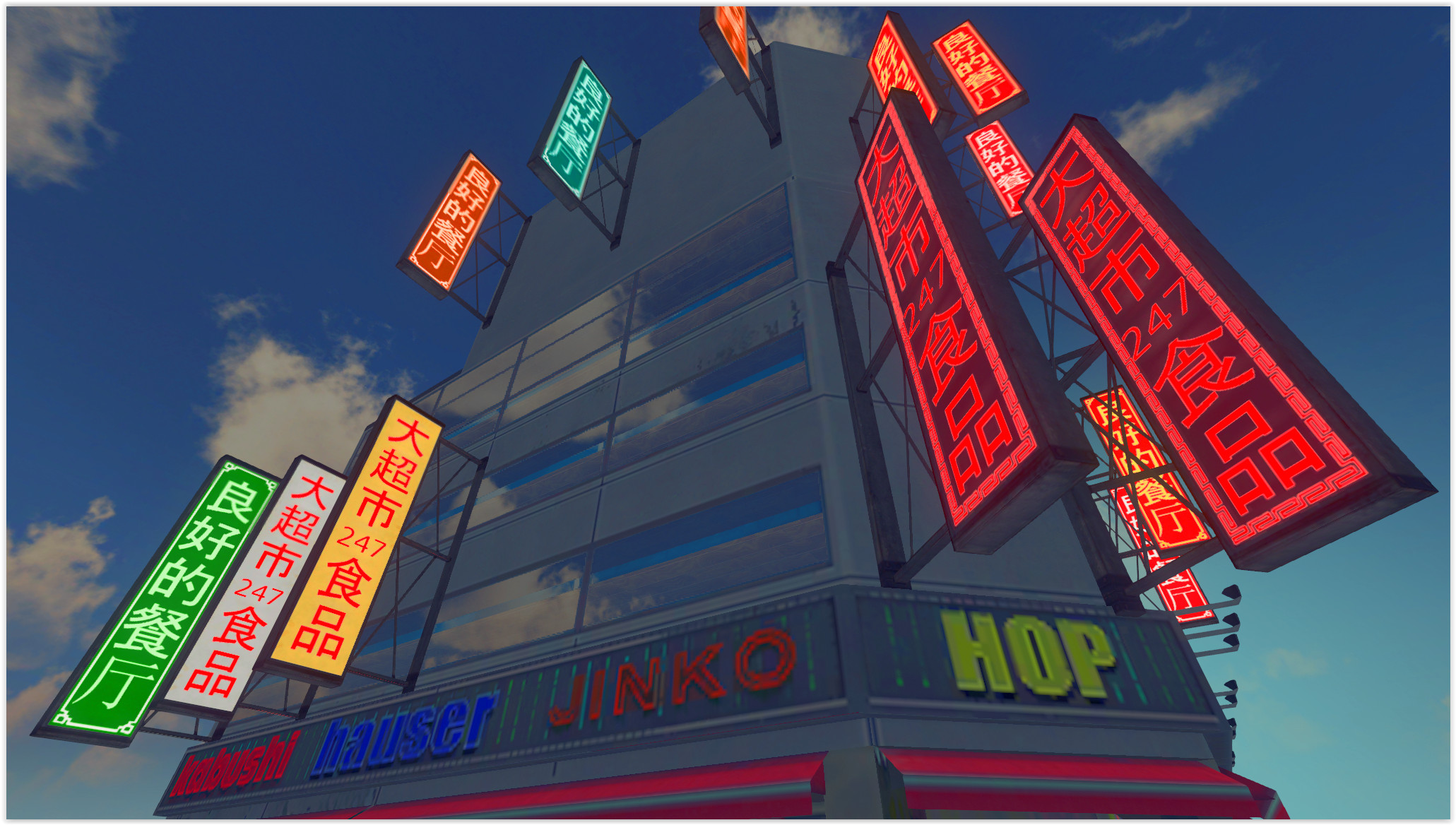 I would highly recommend changing the colors to your personal preference. The A1 colors are based completely on the colormask, the A2 has red symbols. Pivots are aligned wallside and moved up about 8 meters. This means minimum height is right above the average storefront. If you want to attach them higher up, just move the pivot up the walls (can bit a bit iffy but possible as you can see).