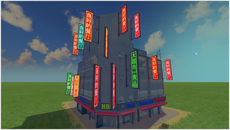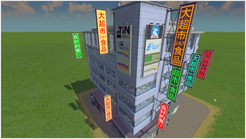 I would highly recommend changing the colors to your personal preference. The A1 colors are based completely on the colormask, the A2 has red symbols. Pivots are aligned wallside and moved up about 8 meters. This means minimum height is right above the average storefront. If you want to attach them higher up, just move the pivot up the walls (can bit a bit iffy but possible as you can see).