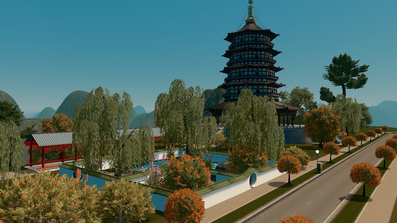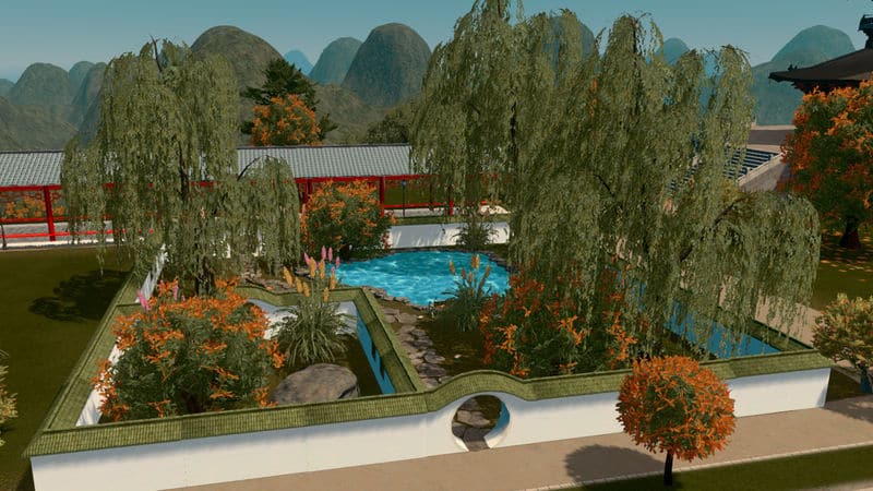 If you would like an Asian-themed park without having to sign up for a zillion required extra items, I published Cherry Bamboo Park an alternative for you! All you need is the free Pearls of the East DLC (it’s a small pack of special Asian-themed items).