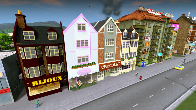 This custom-made wall-to-wall level 1 commerical building grows in 1×1-1×4 high density commercial lots in your European-themed cities (to use it elsewhere, download the European Buildings Unocker mod). This building has 4 unique colour variations.