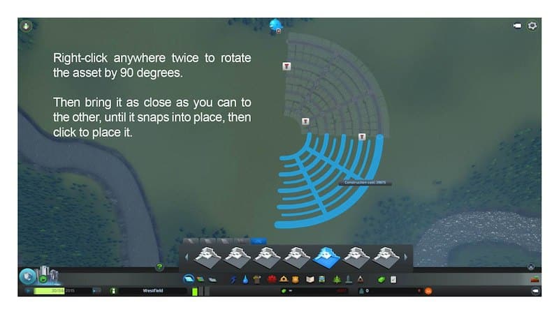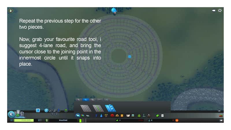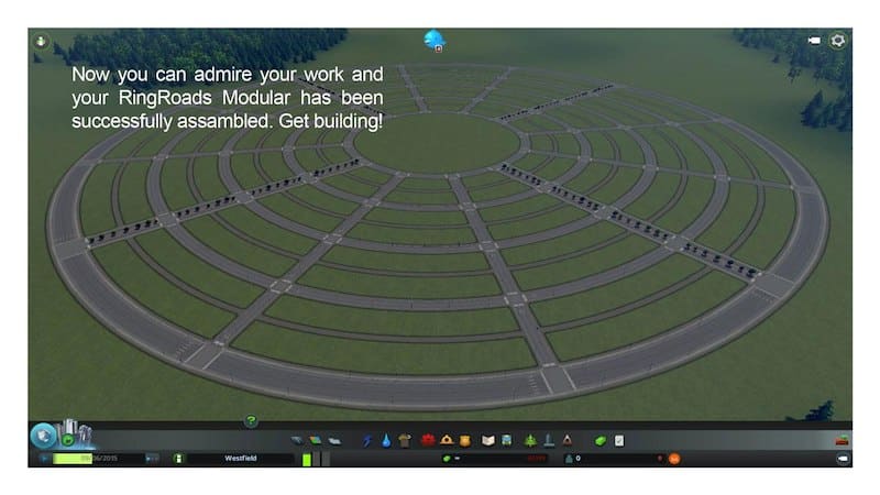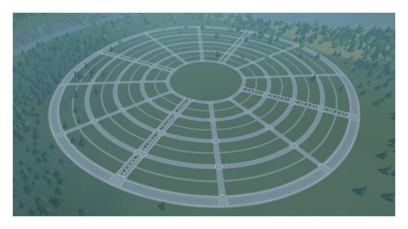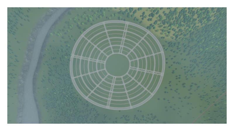 This asset allows you to create a nearly perfectly circular road layout with a few clicks of your mouse. Simply plop the four quadrants in place, place the missing roads, and get building!