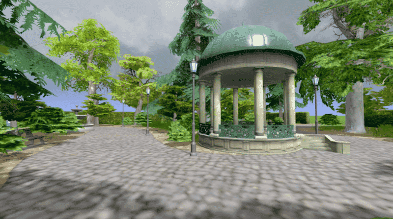 A pretty park with not-so-exotic trees and bushes where your cims can escape the hustle and bustle of city life.