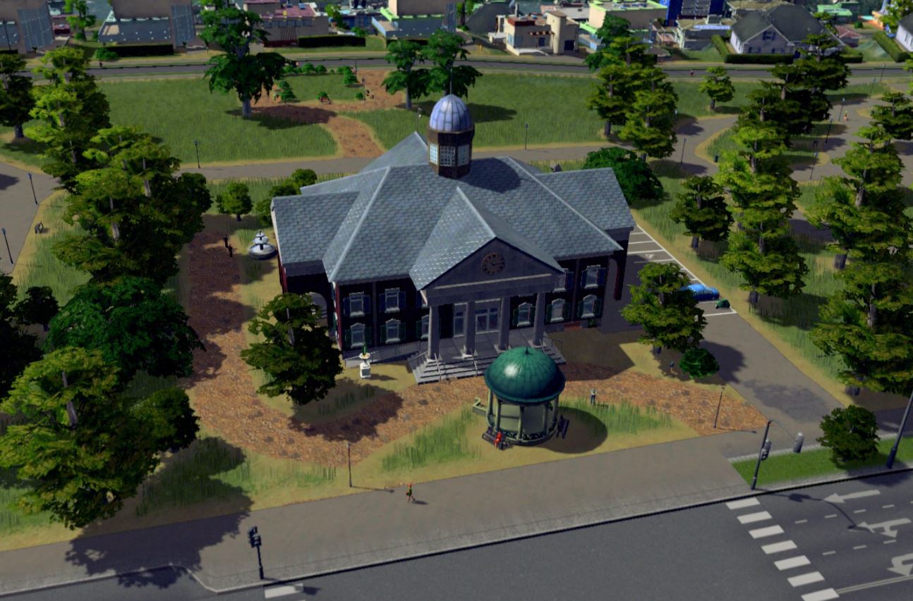 I think the City Hall should be one of the first buildings and the center of a new town.