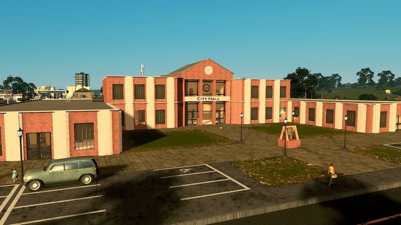 When the small Town Hall is too small it’s time to upgrade. The East and West wings were added and the second floor was built. A clock was added to the front, hopefully lighting doesn’t strike it. Plenty of room for your local government until your city grows more.