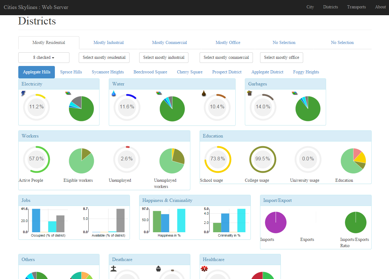 Via la barre de navigation, vous pouvez alors afficher la page de la ville (City), ou celle des districts.