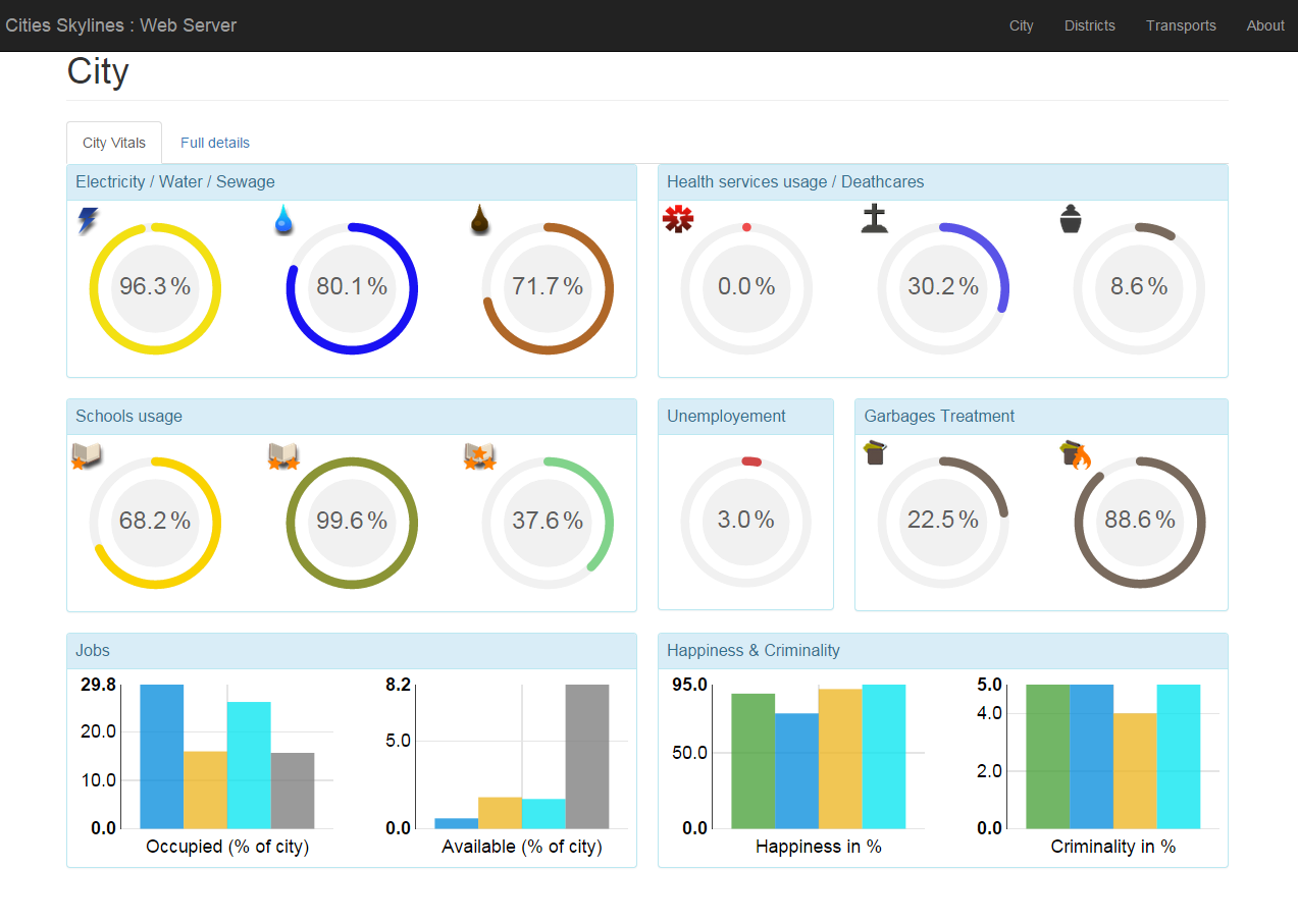 – Les pages peuvent êtres affichées sur une tablette (testé sur une galaxy Tab 4 10.1), mais il faut configurer le WebServer de Rychard avec les bon paramètres pour autoriser la connexion depuis une autre adresse que “localhost”, veuillez vous référer au manuel du mod CityWebServer pour plus de détails.