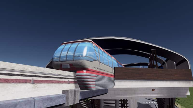 This train is based off the 1962 World’s Fair Alweg monorail in Seattle, WA, and is the last running monorail built by the Alweg company. The original trains are still running today, gliding above the streets of Seattle (though really just the one street). This model accurately recreates the train’s unique shape and retro flair, while being stretched just slightly to be more practical for actual transportation.