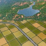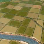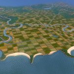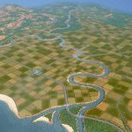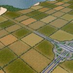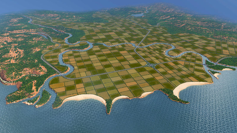 Clear Lake is a parcel of relatively flat land nestled between mountains and a large lake. It includes a couple rivers and a reservoir, highways and railroads, and of course lots of farmland. The starting tile and ideal location for a downtown is on the central piece of land surrounded by the rivers and lake. It’s mostly flat and perfect for building. The map is mostly based on data from a lakeside town in California.