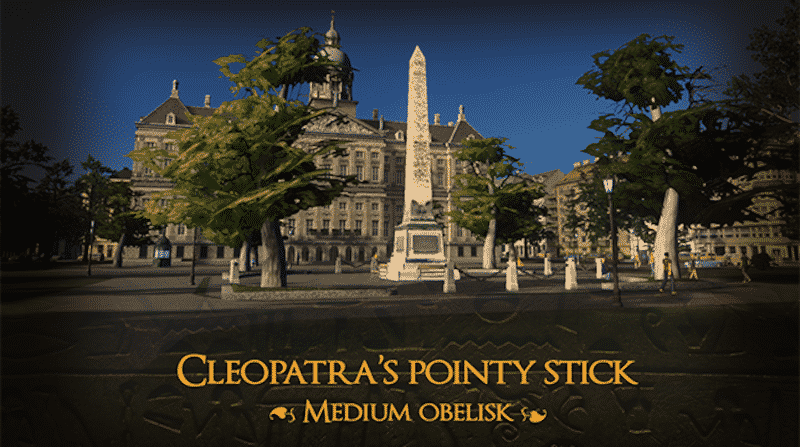 A bigger version of Cleopatra’s Toothpick. Same obelisk, same model, but this time 1.5 times bigger (~38m high instead of 25).