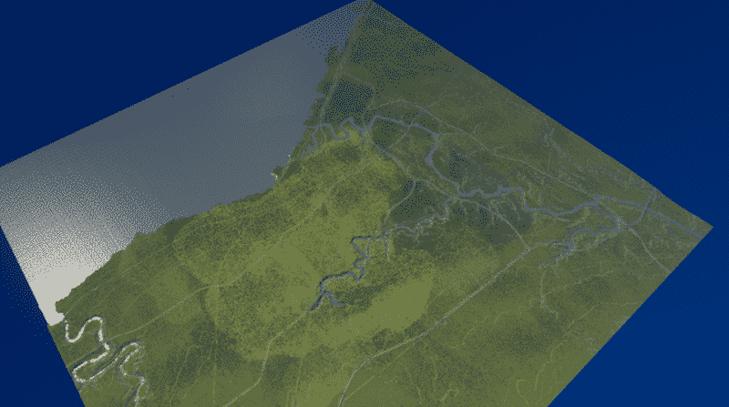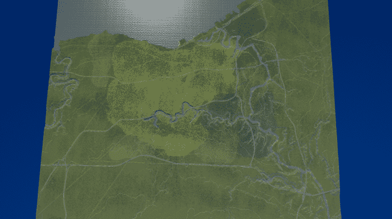 This map focuses on the downtown area of Cleveland, as well as the central and southern, Greater-Cleveland Area. The heightmap was obtained through Terrain.party. I edited the heightmap to make the terrain stick out some more. As for the placement of the highways and railways, I used an overlay mod with a map from the National Atlas, so it is accurate to some extent, yet a little messy.