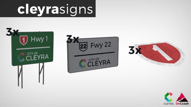 These are highway and freeway signs, made specially for CreativeDEX’ Cleyra map. With subscribing to these, you’ll get: