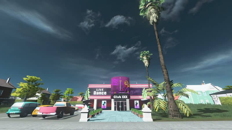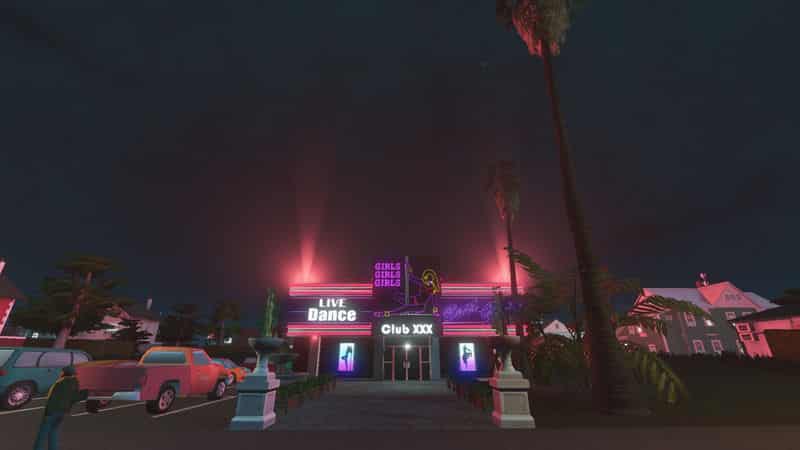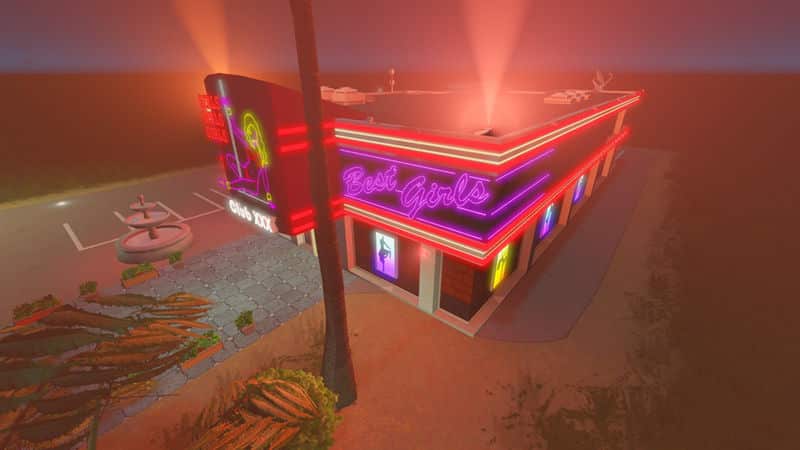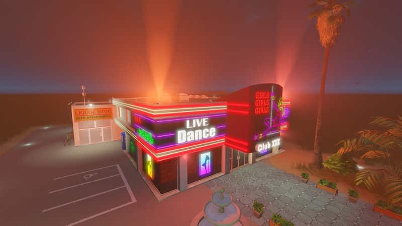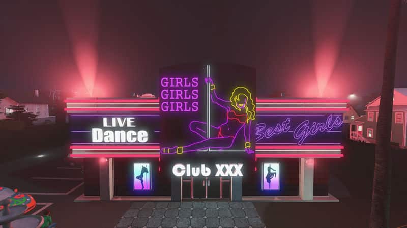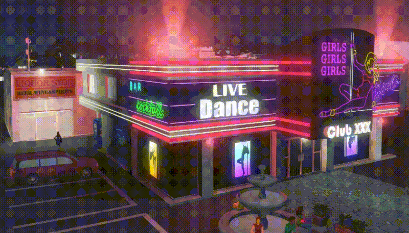 ストリップクラブと酒屋が一体化したユニーク施設です。別途ネオンのプロップが必要です。