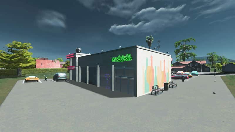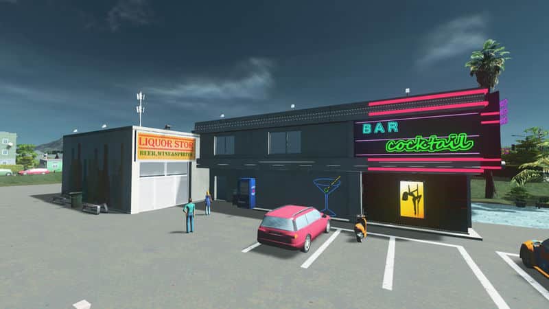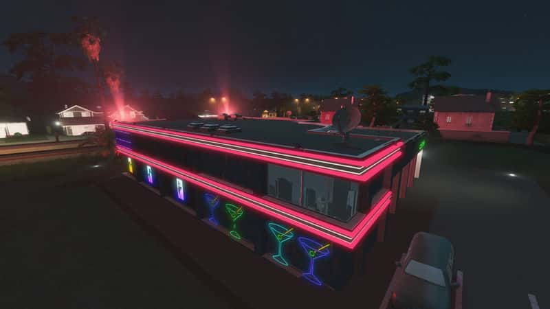 • Required assets: Strip neon sign B 5m (Prop), neon-bar1-2m, neon-cocktail1-4m, neon-drink1-3m, Fan Palm Tree, Fern 1.