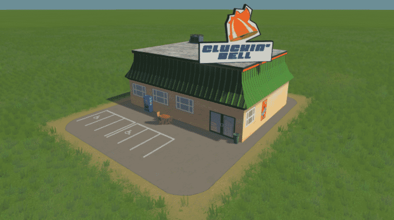 My attempt at recreating the Cluckin’ Bell fast food restaurant from GTA: San Andreas. I’ve never done 3D modeling before, so don’t be surprised if things are a little… off.