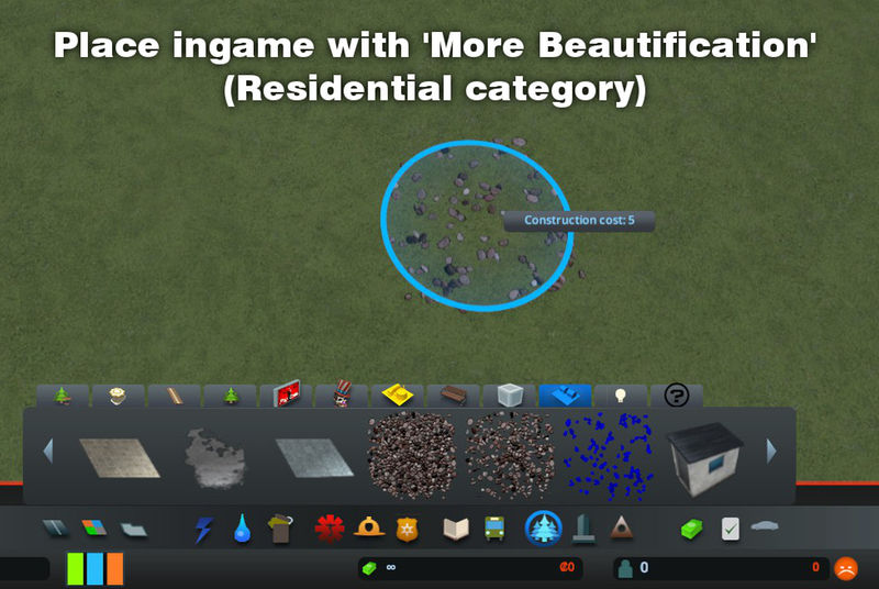 Use ‘More Beautification’ to place the props. These are decal props, that means the texture will be placed directly on the terrain.