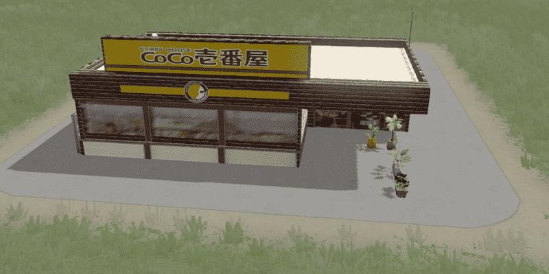 おなじみのココイチが、Cities: Skylines に進出です。低密度商業区画レベル2を指定してあります。