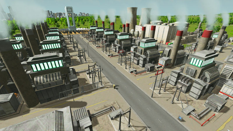 By comparison this reactor is expensive tech, but it’s compact and easy to group together/relocate. The main reactor runs almost silently thanks to its trademark low energy operation. The plant is run by 3 highly educated specialists and 1 educated security guard.
