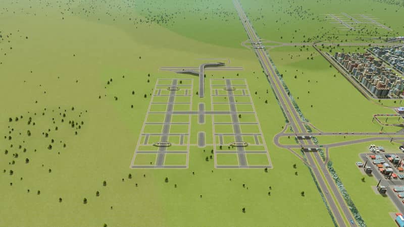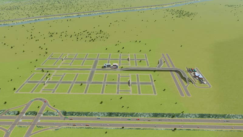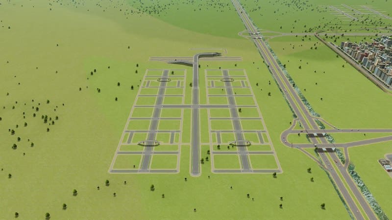 with only 3 pieces. You do need to draw 3 very simple 6-lane 1-way straights due to the connection bug though.