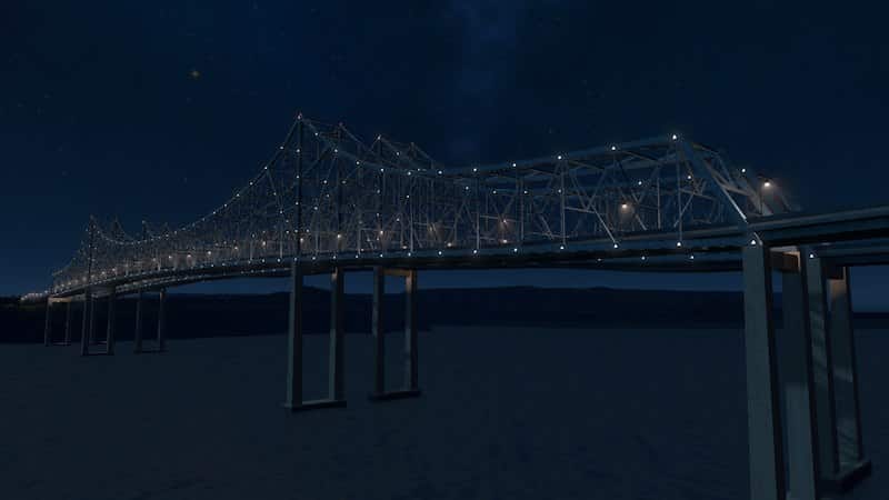 At 1km long (total length of cantilever structure, and hence this asset), It is the fourth-longest cantilever bridge in the world. It makes in-game bridge spans look comically small — which, in fairness, they are.